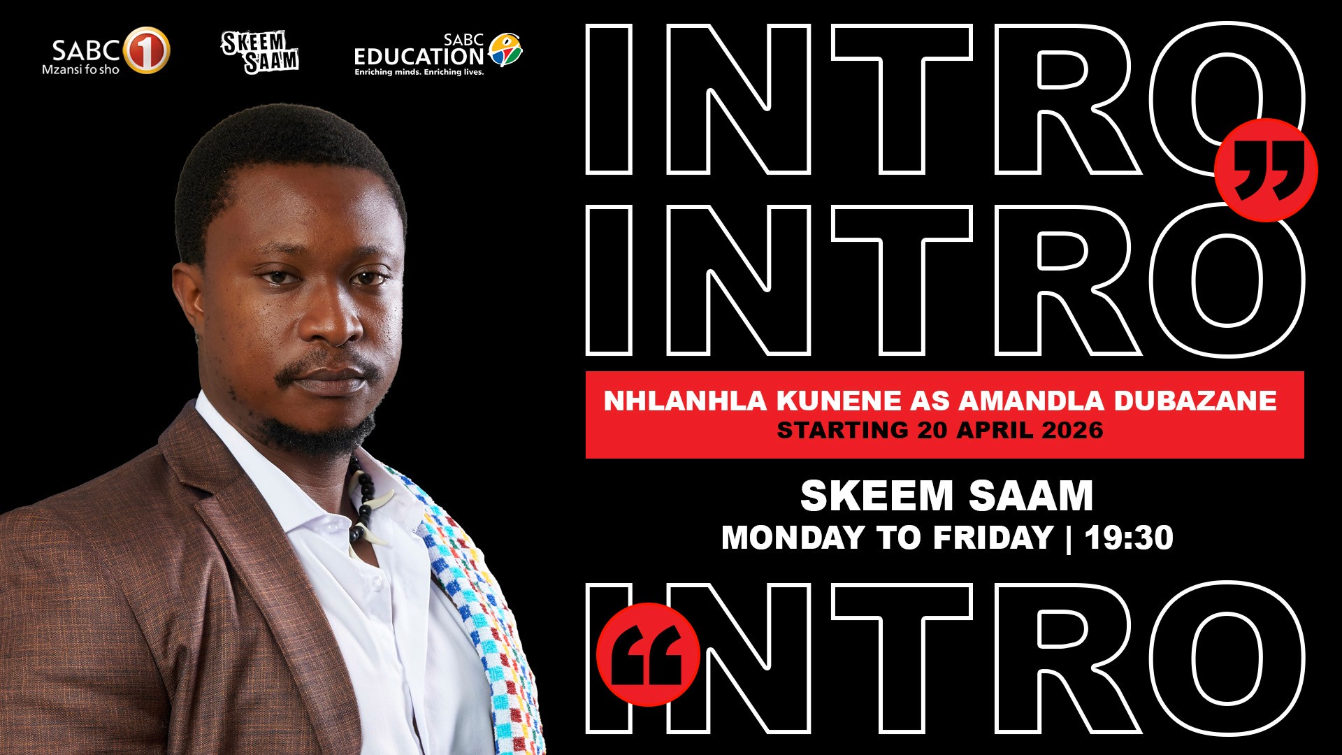 Nhlanhla Kunene makes his debut as Amandla Dubazane on Monday, 20 April 2026. Catch Skeem Saam weekdays at 19:30 on SABC 1. Set your reminder. Seriously.